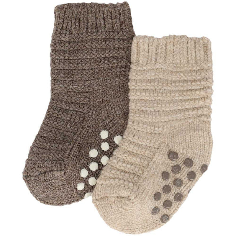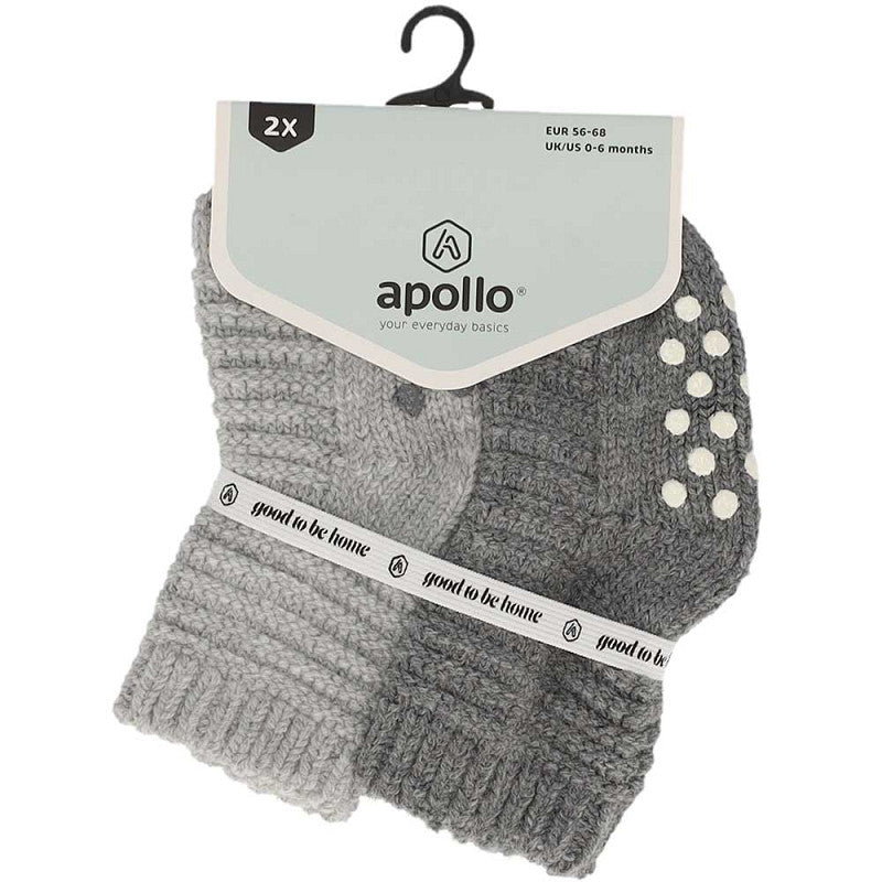 Apollo Baby Socks - Antislip - Effen Ribbel / Grijs - Beige 2 Pack