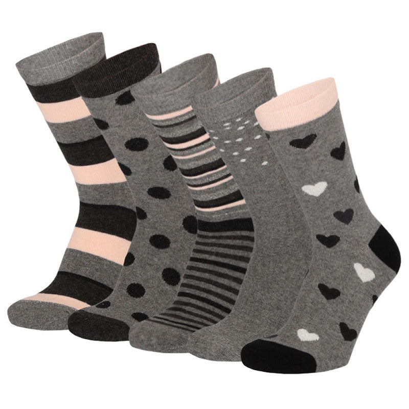 Apollo - Damessokken - Fashion - Kiss / Rood Zwart - Grijs Roze - Bordeaux Zwart 5 Pack