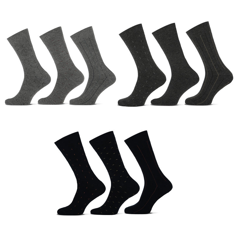 Deze sokken hebben maar één design en drie verschillende kleuren, om dag dagelijks te dragen.  Zeer modieus en met een goede pasvorm.  Hebben een platte teennaad wat goed is voor de iets gevoeligere voeten.